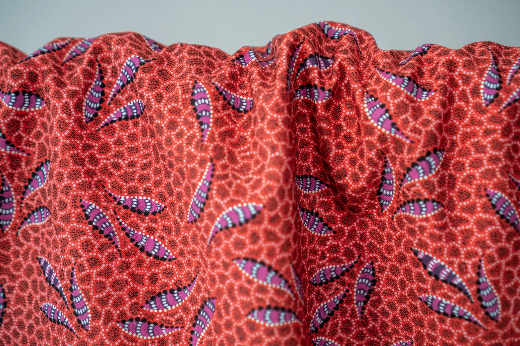 Chaque mètre de tissu Batik Rouge Rose est imprimé uniquement sur commande, selon vos besoins réels. Cette approche élimine les surstocks et réduit considérablement l’empreinte écologique de la production textile.