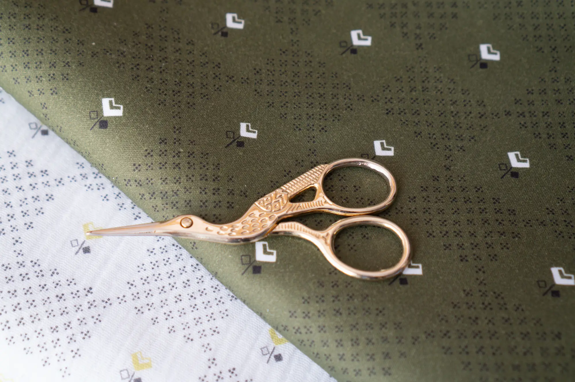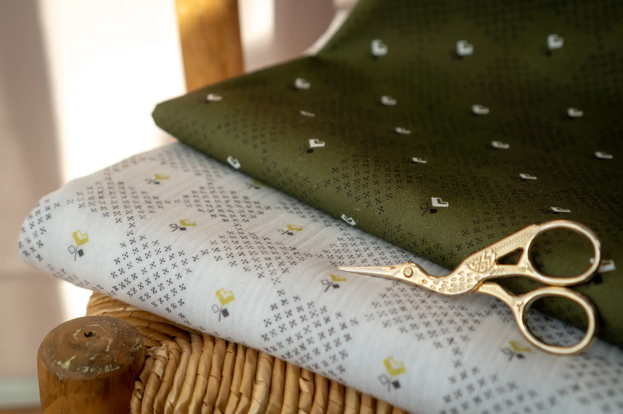 Tissu Broderie Olive • Damier inspiré broderie traditionnelle