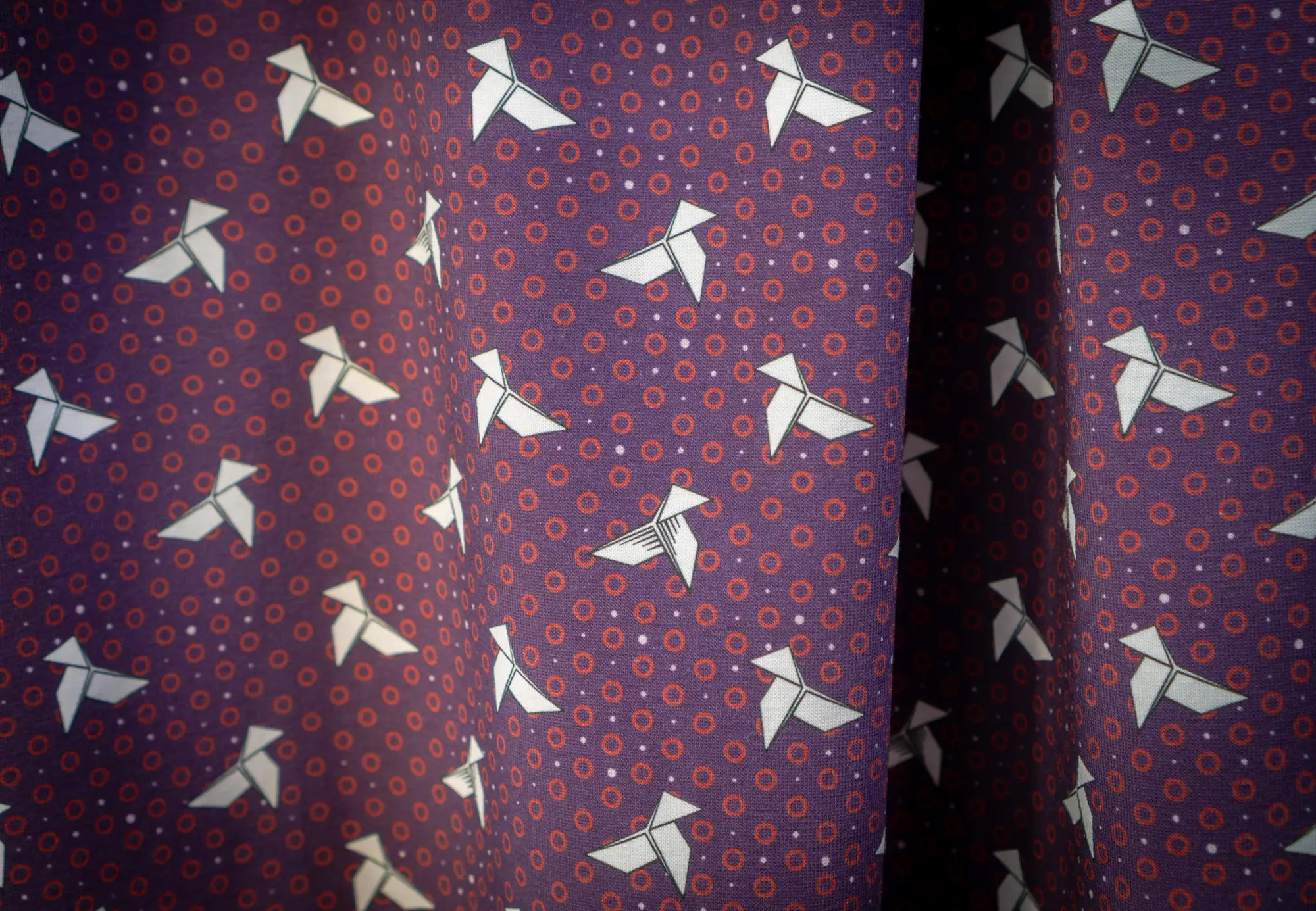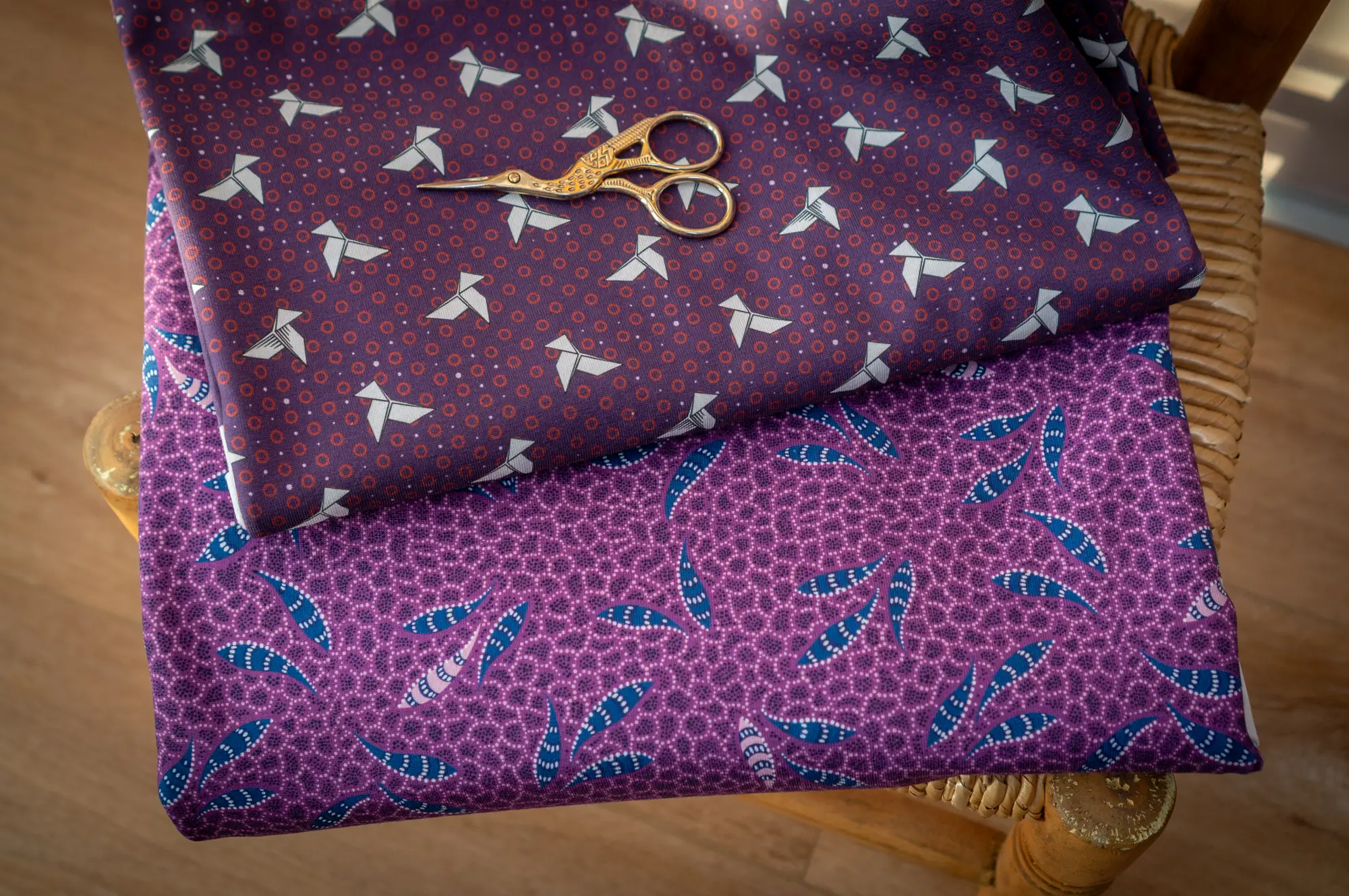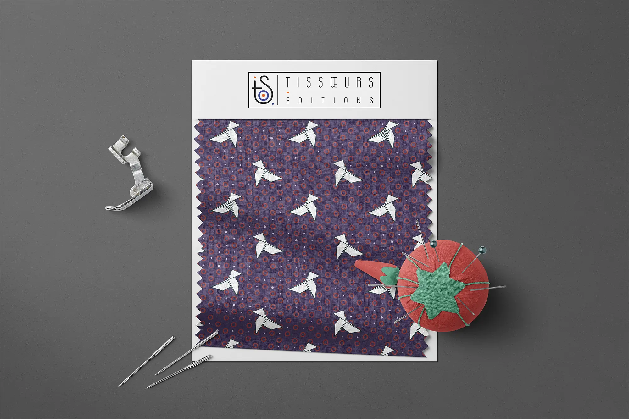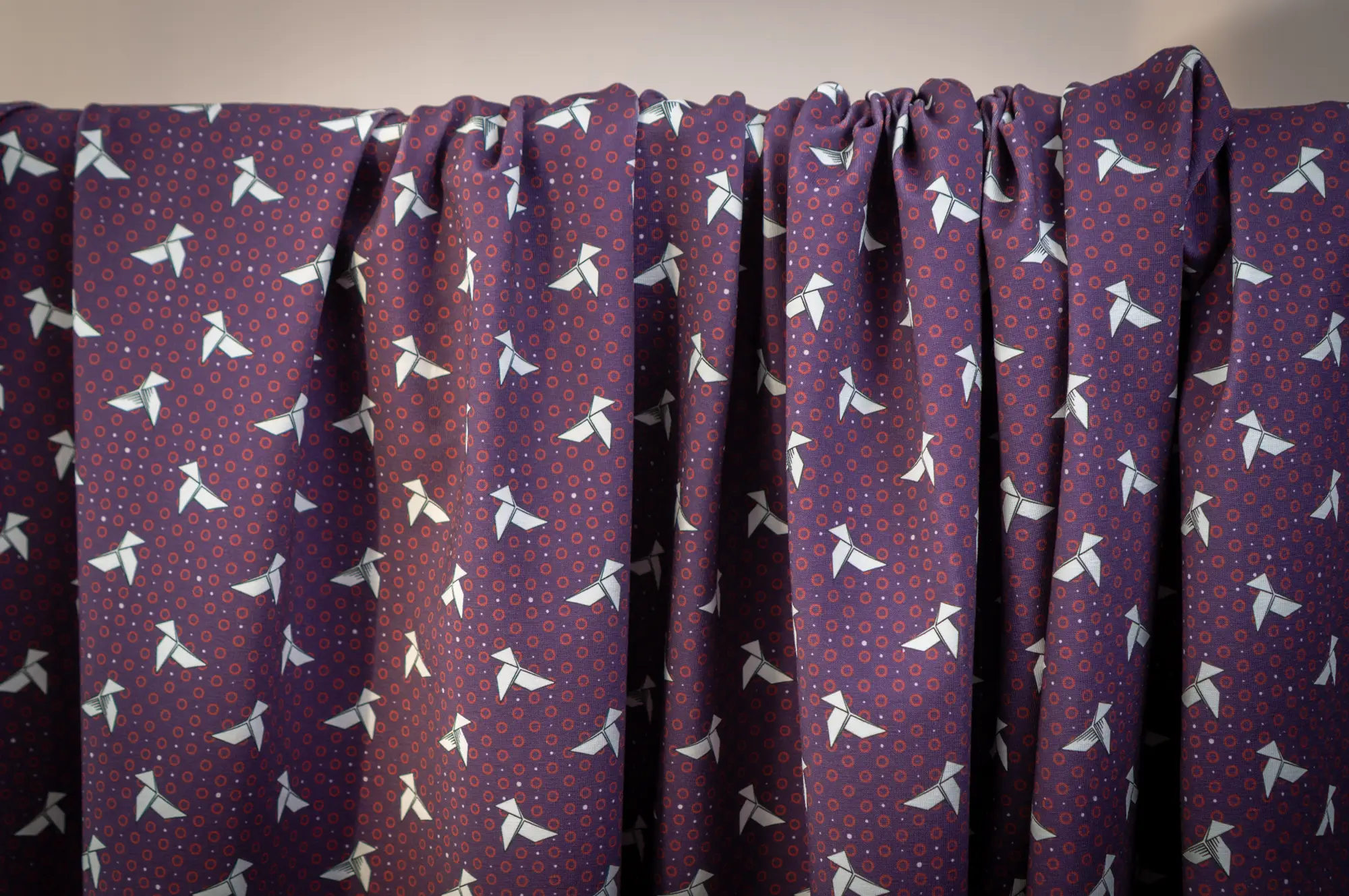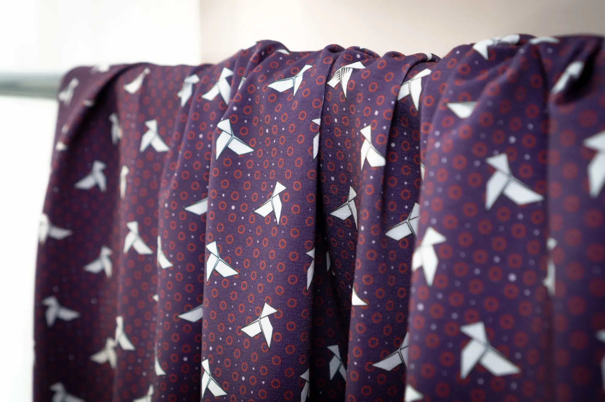 Ce tissu origami prune s’adapte à tous vos projets sur 6 supports certifiés OEKO-TEX 100 : percale de coton, satin de coton, double-gaze, toile panama, jersey et french terry. Imprimé à la demande en Europe pour une couture sans gaspillage.