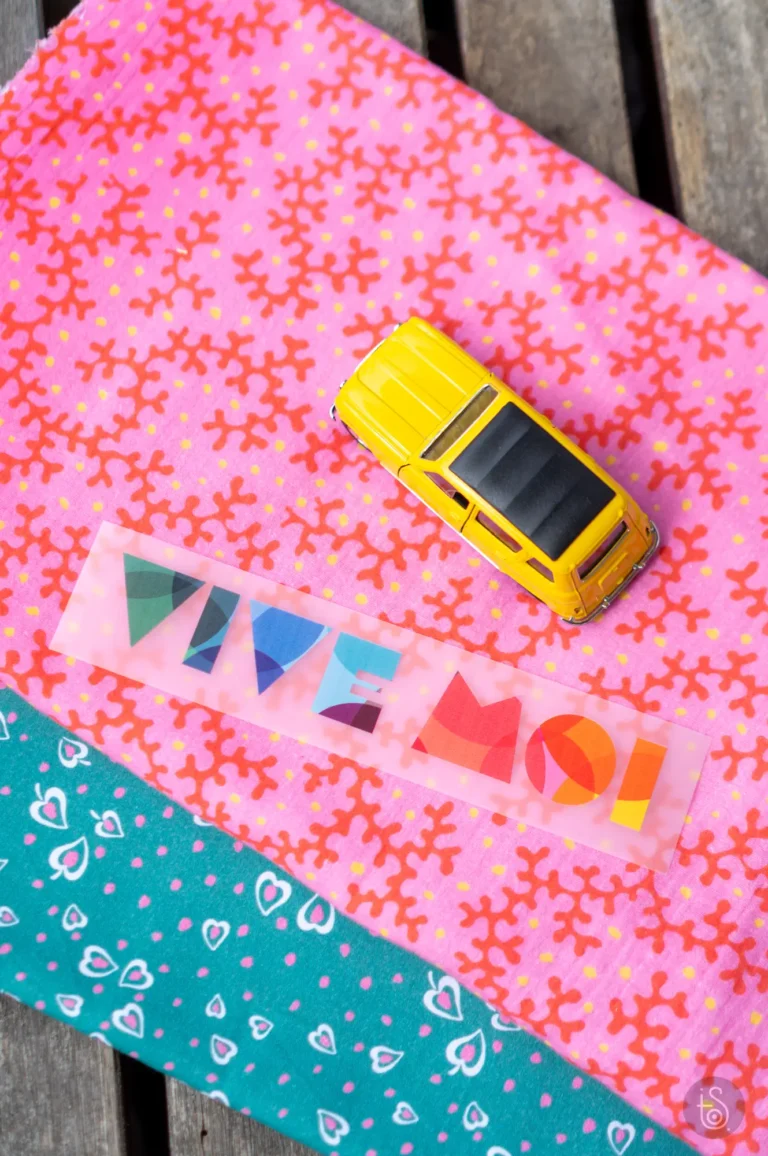À poser sur du coton, polyester ou tissu mixte. T-shirt, tote bag, banane, sweat ou housse de coussin : tout peut devenir une œuvre portable.